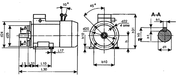 Установочно-присоединительные размеры двигателей с электромагнитным тормозом приведены в таблицах и на рисунке.